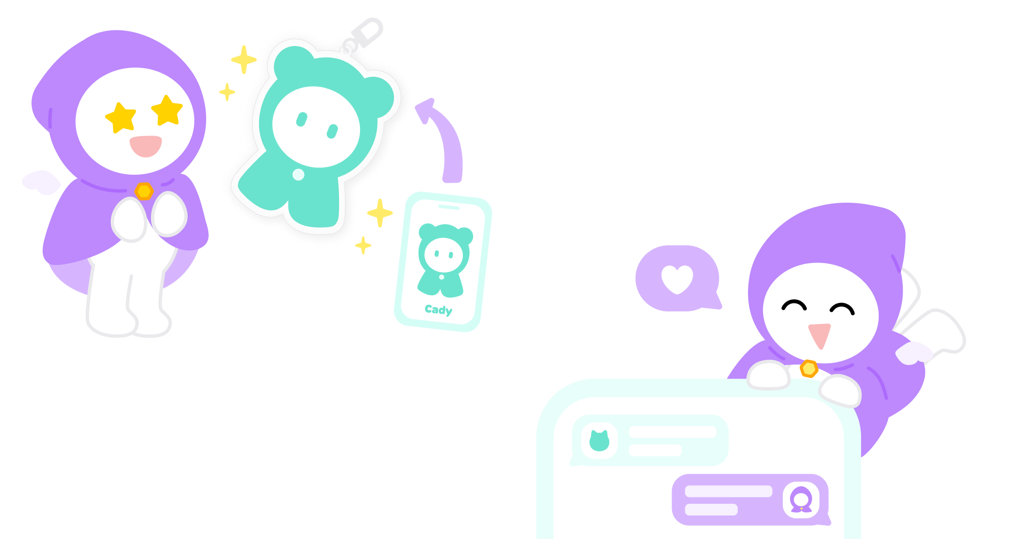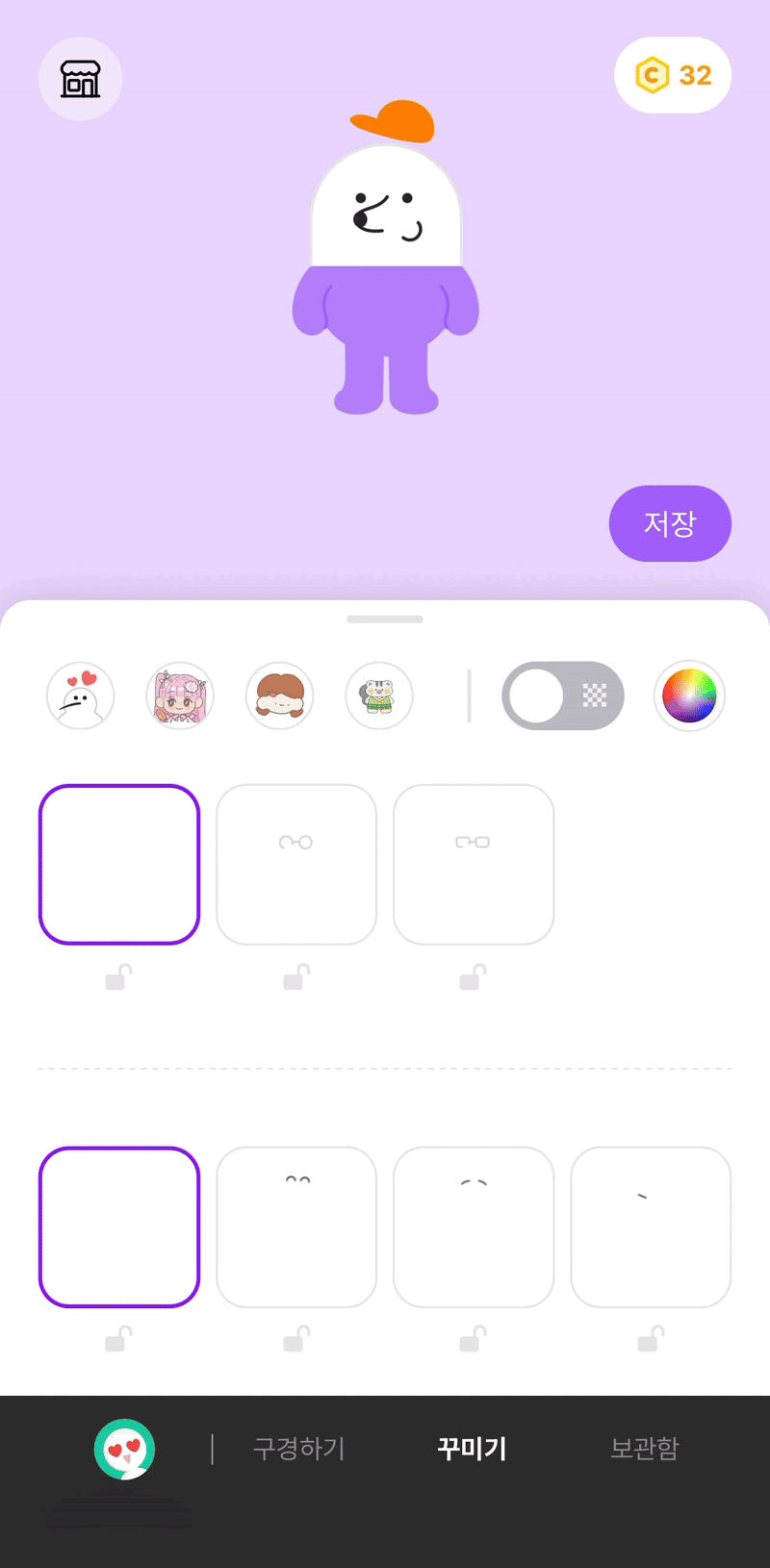 꾸민 캐릭터를 보관함에 저장하고, 나만의 굿즈를 만들 수 있어요. 채팅에서 내가 꾸민 캐릭터를 자랑하고, 다른 사람들이 꾸민 캐릭터를 구경할 수도 있어요!